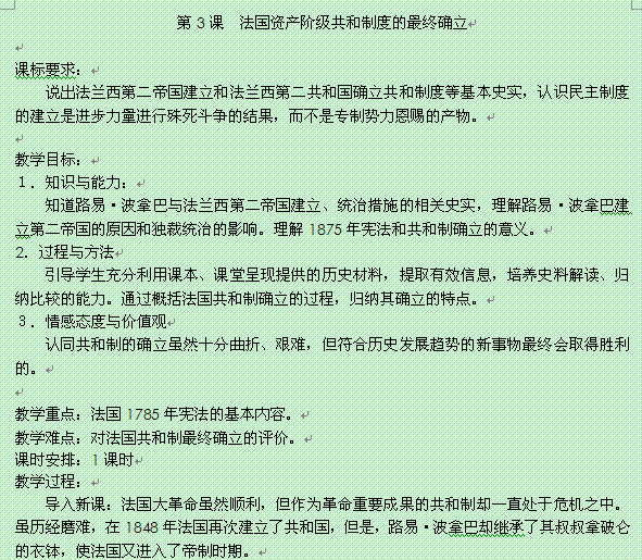 百度:高二历史教案: 第3课 法国资产阶级共和制度的最终确立(新人教版选修2)