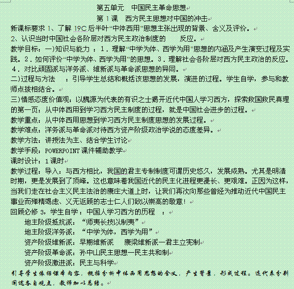 谷歌:高二历史教案: 第6单元第1课 西方民主思想对中国的冲击(新人教版选修2)