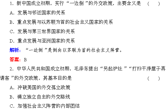 百度:(人教新课标)必修1历史练习(含解析):第23课《新中国初期的外交 》 Word版含答案
