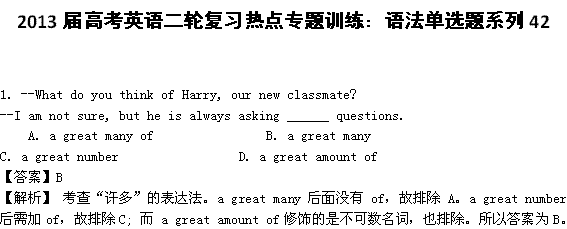 2013届高考英语二轮复习热点专题训练:语法单选题系列42