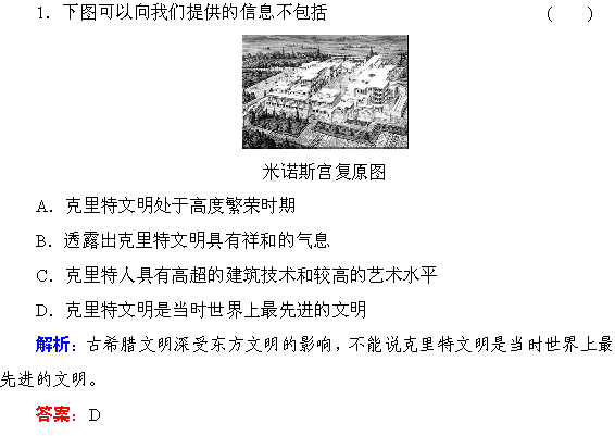 谷歌:(岳麓版)2013高一历史必修一限时训练(含解析):2-5爱琴文明与古希腊城邦制度 Word版含答案