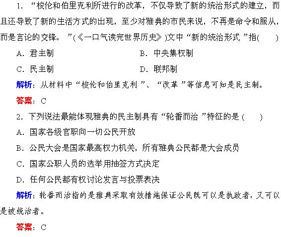 百度:(岳麓版)2013高一历史必修一限时训练(含解析):2-6雅典城邦的民主政治 Word版含答案
