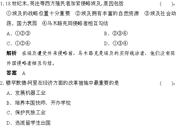 百度:(岳麓版)选修1 2013高二历史练习(含解析)第13课《穆罕默德·阿里改革》 Word版含答案