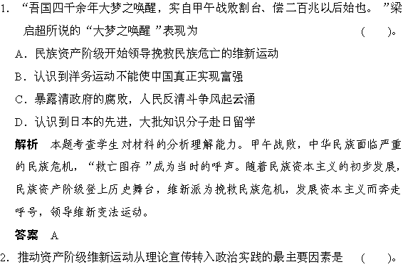 百度:(岳麓版)选修1 2013高二历史练习(含解析)第15课《戊戌变法》 Word版含答案