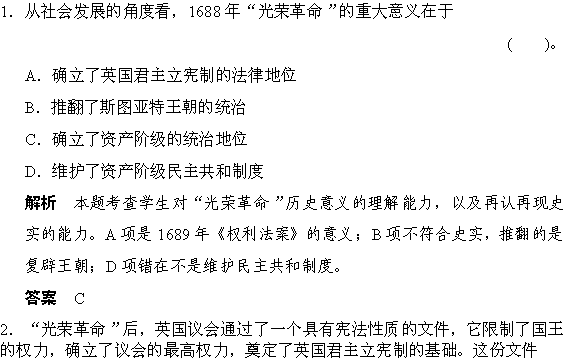 百度:(人教新课标)选修二 2013高二历史练习(含解析) 第四单元 第1课《英国君主立宪制的建立》 Word版含答案