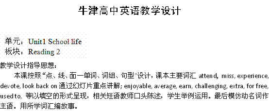 百度:湖南省吉首市民族中学高一英语教案:Unit1 School Life Reading(2)(牛津译林版必修1)