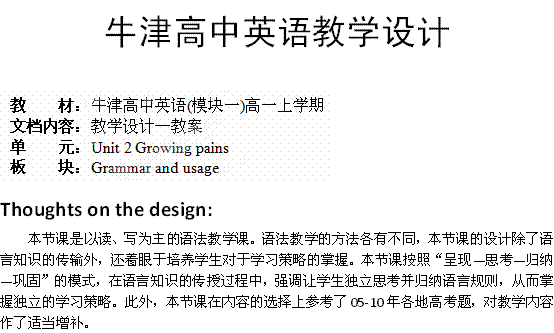 谷歌:湖南省吉首市民族中学高一英语教案:Unit2 Growing pains Grammar and usage(1)(牛津译林版必修1)