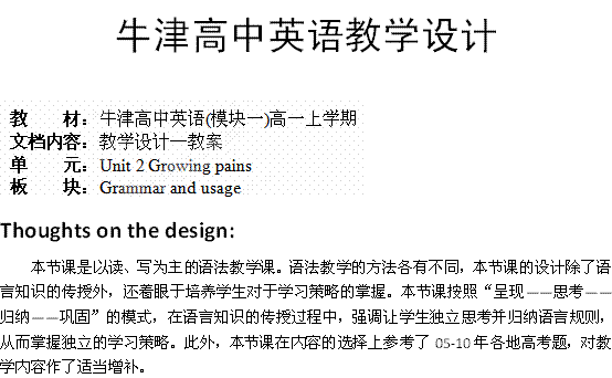 谷歌:湖南省吉首市民族中学高一英语教案:Unit2 Growing pains Grammar and usage(2)(牛津译林版必修1)