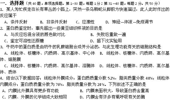百度:《Ks5u首发》安徽省望江四中2013届高三开学月考生物 Word版含答案