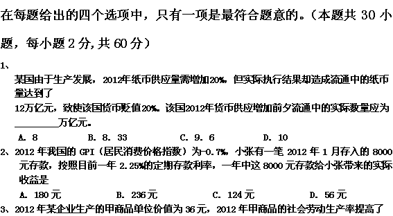 百度:《Ks5u首发》安徽省望江四中2013届高三开学月考政治 Word版含答案