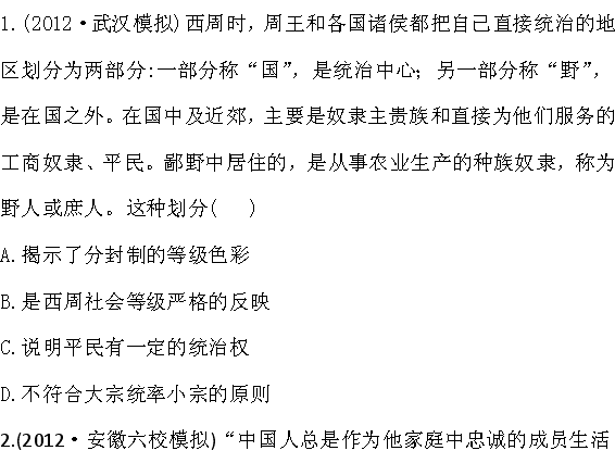 有道:2013高考历史二年模拟·一年权威预测(含解析) 1古代中国的政治制度 Word版含答案