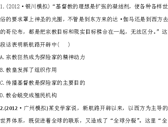 百度:2013高考历史二年模拟·一年权威预测(含解析) 9资本主义世界市场的形成和发展 Word版含答案