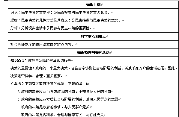 有道:《同步精品资源套餐》2013学年高一政治学案:1.2.2民主决策:作出最佳的选择(新人教版必修2)