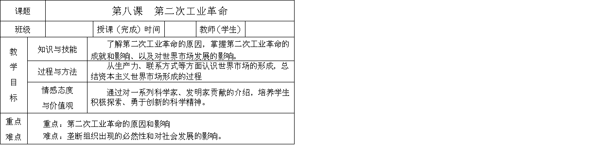 有道:陕西省澄城县寺前中学2013高一历史 第8课 第二次工业革命 导学案