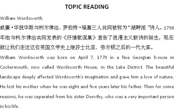 有道:河北省邯郸四中高二英语同步辅导:Unit 2 PoemsTOPIC READING 1(新人教版选修6) Word版含答案