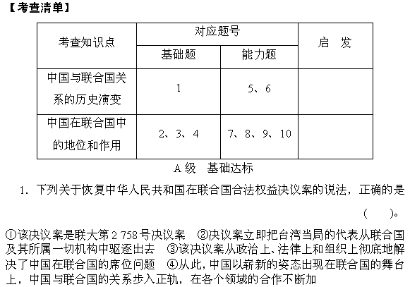 有道:(人教版)选修三 2013高二政治练习(含解析)5-2《中国与联合国》 Word版含答案