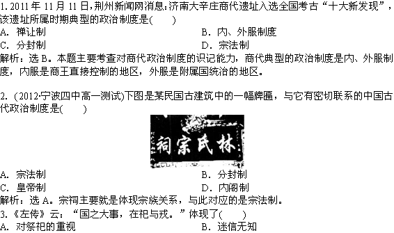 百度:2013年岳麓版高一历史必修1电子题库(含解析) 第一单元 第1课 知能演练轻松闯关 Word版含答案