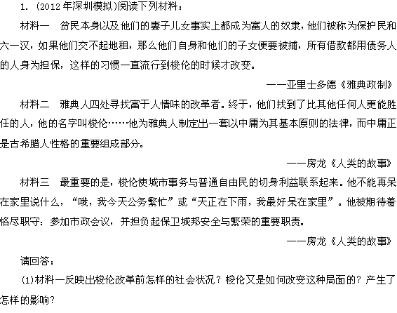 有道:优化指导(新课标)2013高考历史总复习 阅读材料解析 第1讲 古代历史上的改革 人民版选修1 Word版含答案
