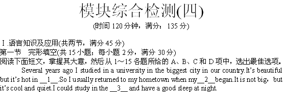 百度:2013高考英语总复习电子题库 深圳专用:模块综合检测(四)(外研版必修5) Word版含答案