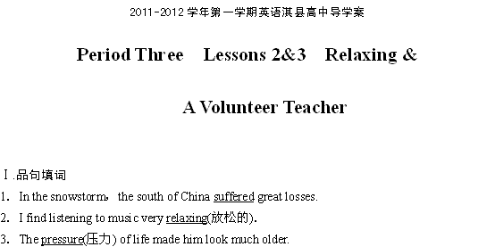 有道:河南省淇县高级中学2011-2012学年高一上学期英语导学案:Unit1 Lesson 3 A Volunteer Teacher(北师大版必修1)