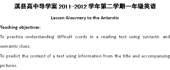 河南省淇县高级中学2011-2012学年高一下学期英语导学案: lesson 4 journey to the antarctic(北师大版必修3)