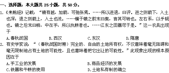 百度:《Ks5u首发》山西省山大附中2012-2013学年高一3月月考历史试题 Word版含答案