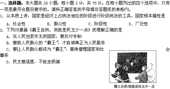 百度:《Ks5u首发》山西省山大附中2012-2013学年高一3月月考政治试题 Word版含答案