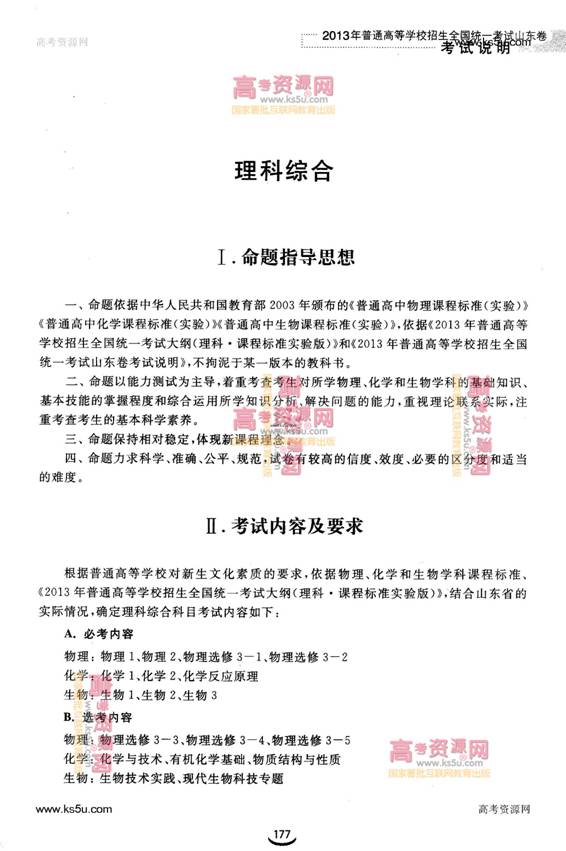 百度:《Ks5u首发》山东省2013年高考考试说明——理综 扫描版