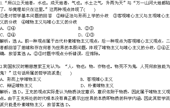 有道:2013年《优化方案》人教版政治必修4电子题库 第一单元第二课第二框知能强化训练 Word版含答案