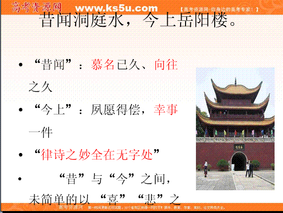 有道:天津市武清区杨村四中高二语文课件:2.4《杜甫登岳阳楼》(新人教选修 中国古代诗歌散文欣赏)