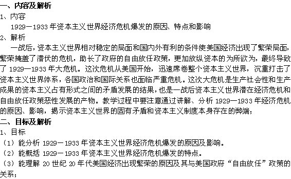 百度:云南省高一历史教案 专题六 第一讲 “自由放任”的美国 人民版必修2