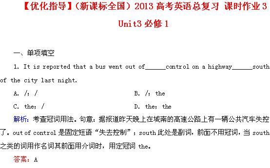 百度:优化指导2013高考英语总复习 课时作业3 新人教版必修1(新课标全国) Word版含答案