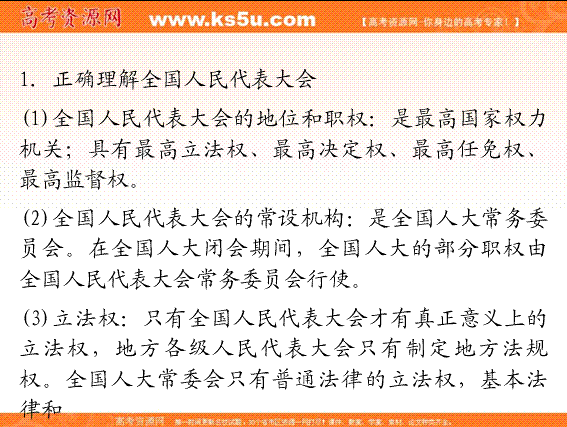 有道:2013学年高一政治精品课件:第5课 我国的人民代表大会制度(新人教版必修2)
