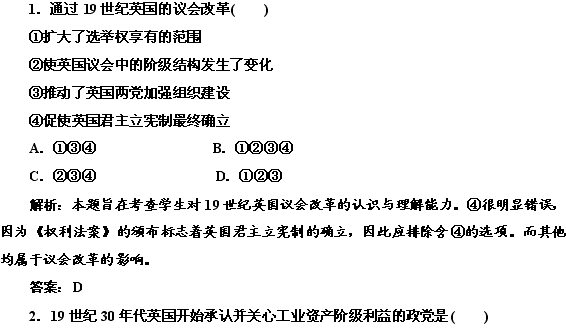 有道:2013高二历史人民版选修二课下作业(含解析) 专题四 第二课 课时跟踪训练 Word版含答案