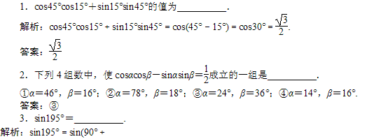 谷歌:2013高中新课程数学(苏教版必修四)第3章3.1.1知能优化训练 Word版含答案