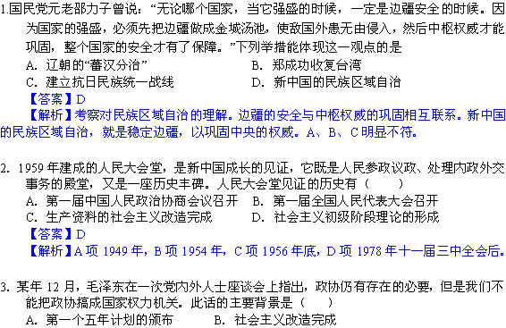 谷歌:2013年高考历史最可能考的50道题(中国现代史) Word版含答案