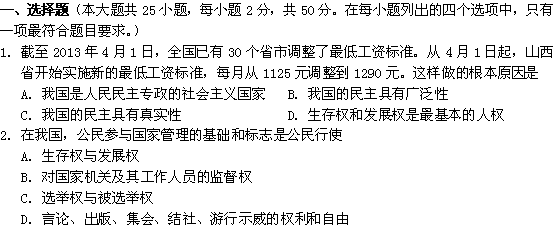 百度:《Ks5u首发》山西省山大附中2012-2013学年高一下学期期中政治试题 Word版含答案