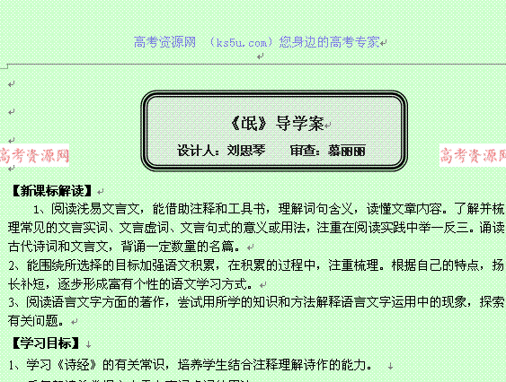 谷歌:威海二中高一语文导学案:《氓》导学案(必修3)