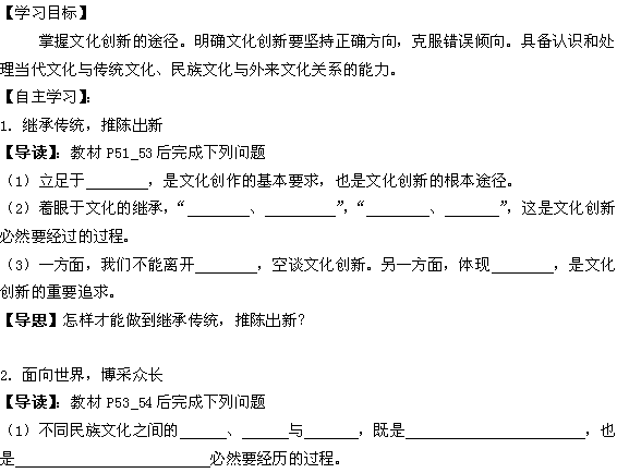 有道:山西省石楼县石楼中学高二政治《52文化创新的途径》导学案 新人教版必修3