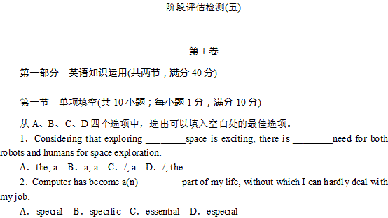 百度:2014届高考英语一轮复习方案(新课标·外研 四川省专用):阶段评估检测 (5) Word版含答案