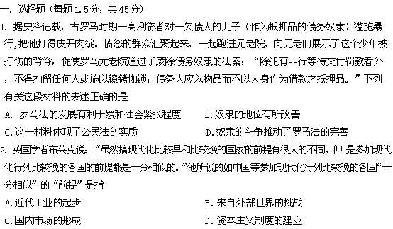 百度:《Ks5u首发》山西省山大附中2012-2013学年高二下学期期中历史试题 Word版含答案