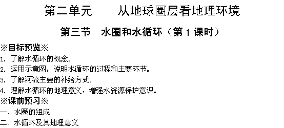谷歌:淮安市新马高级中学高一地理必修1教学案 第二单元第三节 水圈和水循环(第1课时)