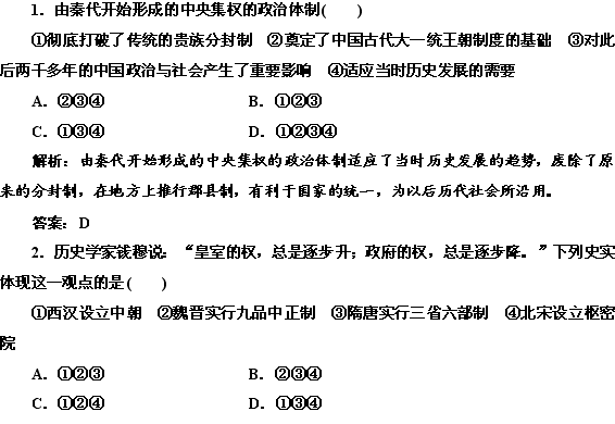 谷歌:2013高二历史人民版选修四课下作业(含解析) 专题一 古代中国的政治家 知识整合与阶段检测 Word版含答案