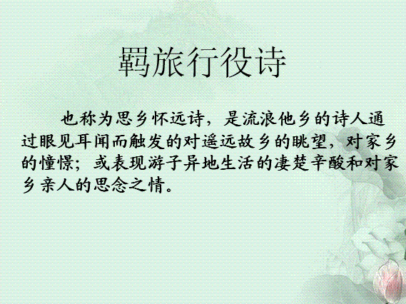 百度:吉林省长岭县第四中学高三语文精品课件:羁旅行役诗总结 新人教版选修《古代诗歌鉴赏》