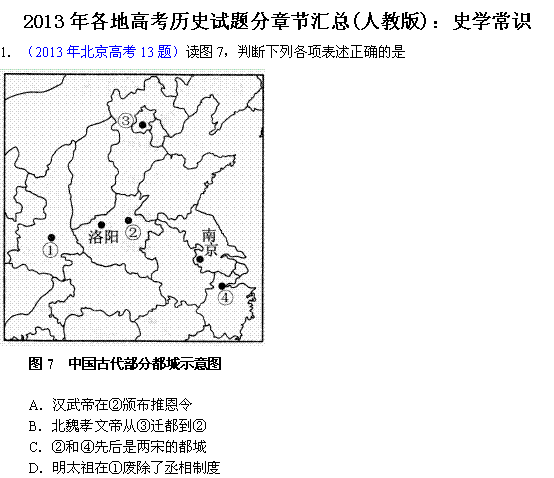 谷歌:2013年各地高考历史试题分章节汇总(人教版):史学常识 Word版含答案