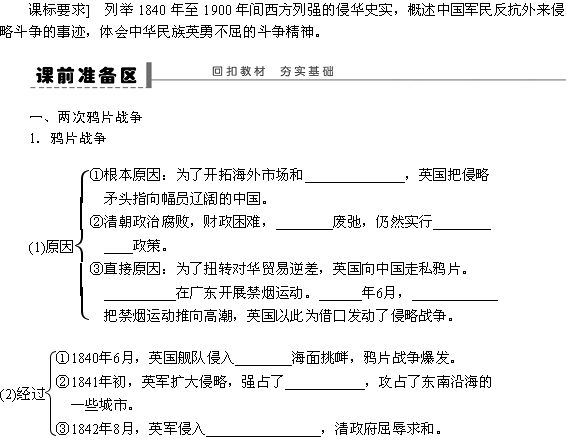 有道:2014届高三人教版历史一轮复习学案:学案6 鸦片战争、甲午中日战争和八国联军侵华