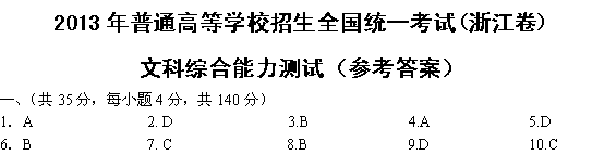 有道:2013年高考真题——文综(浙江卷) Word版含答案