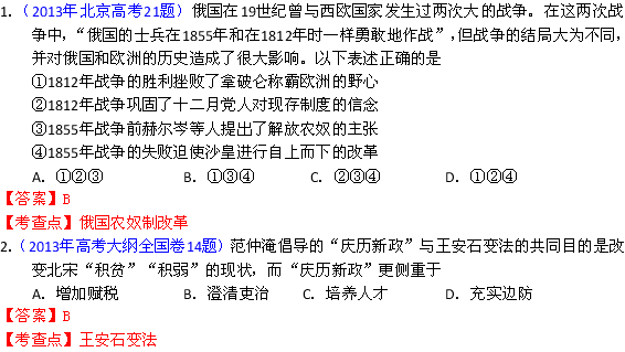 百度:2013年全国各地高考历史试题分章节汇编 《选修1—历史上重大改革回眸》部分 Word版含答案
