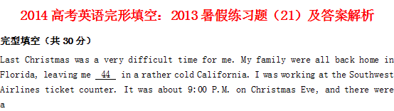 百度:2014高考英语 完形填空 2013暑假练习题(21) Word版含答案