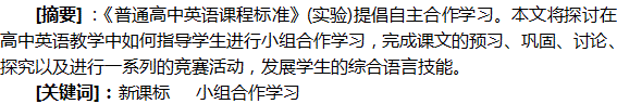百度:云南省大理州宾川县第四高级中学高中英语教学论文:在高中英语教学中指导学生进行小组合作学习